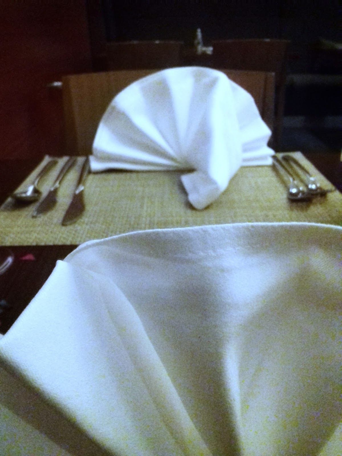 I love how these white table napkins were folded. The table setting was perfect and inviting for our dinner.