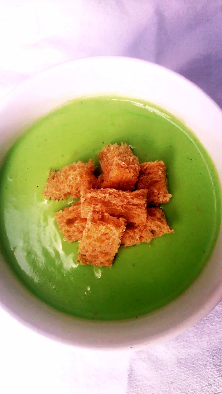 and top with croutons or plain brown bread chopped into mini slices or whatever your Heart fancies