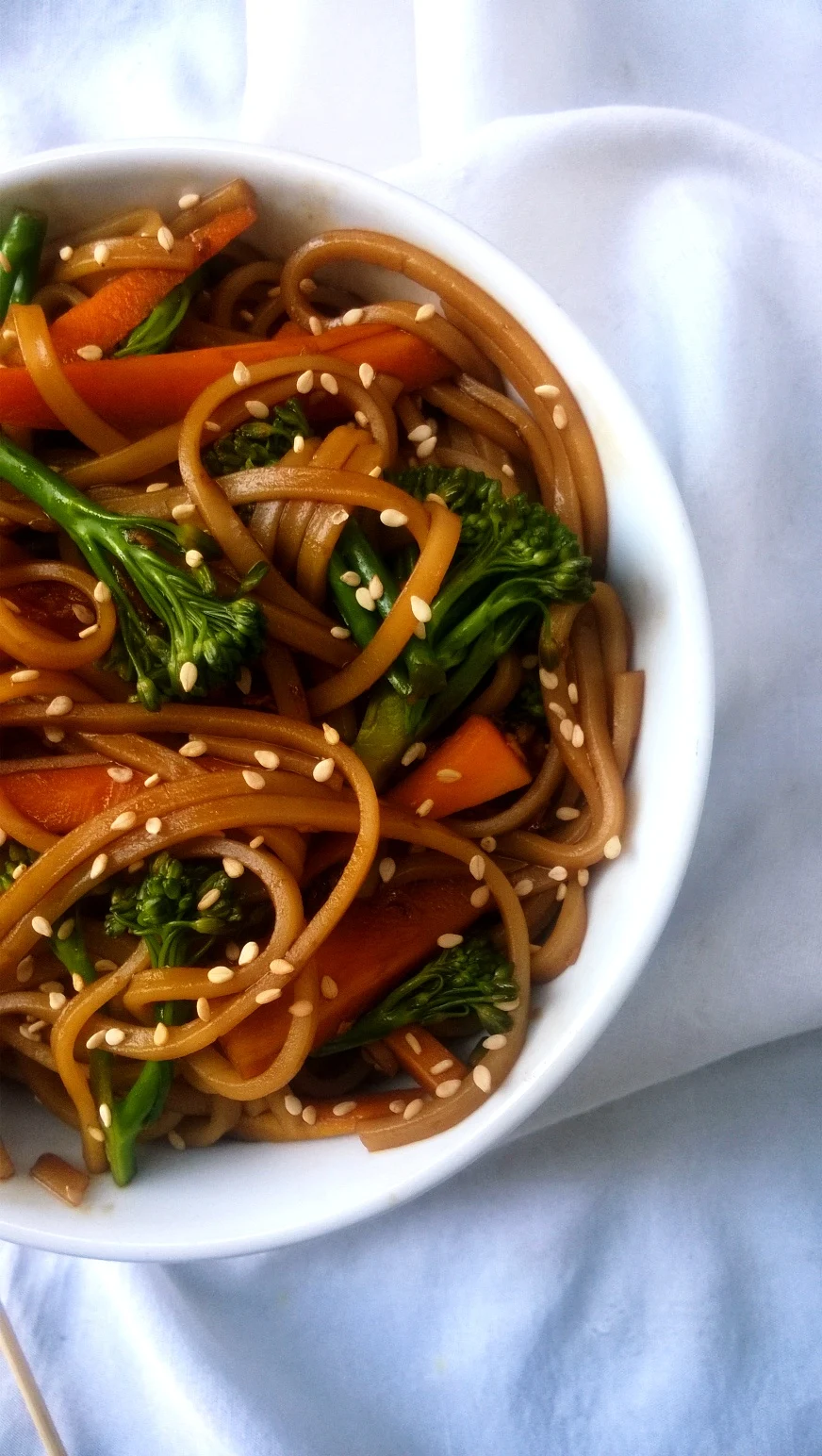 - Steam the carrots and broccoli until al'dente. Add vegetables to the noodles