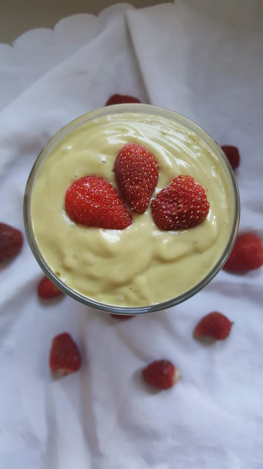Absolutely! Frozen strawberries (and even frozen avocado chunks) make the smoothie cool and thick, like a milkshake.